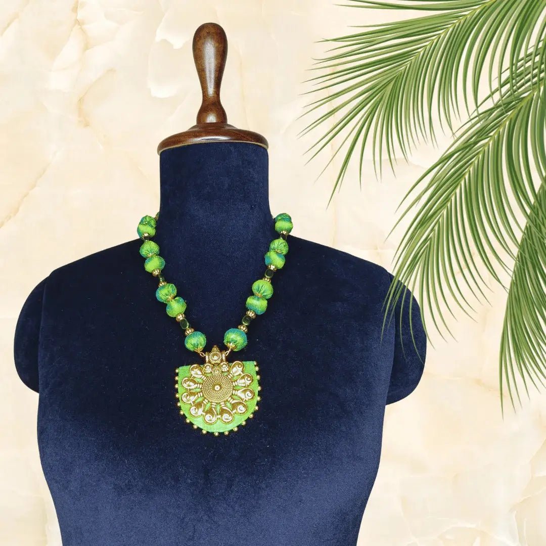 This Green Elegant Fusion Necklace with Earring is a stylish and sophisticated addition to any outfit. Made with green and gold accents, it exudes elegance and class. A perfect accessory for any occasion, this necklace is sure to turn heads and elevate your style.
