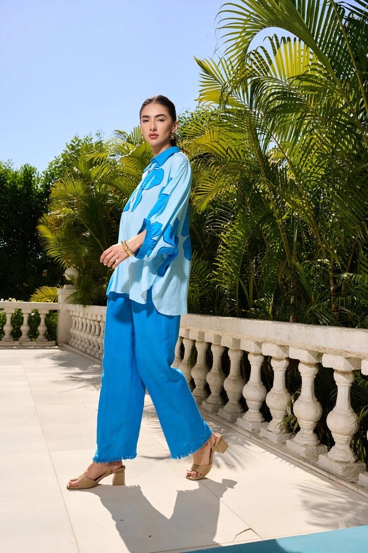 Embrace effortless elegance with the Azure Hibiscus Set, a versatile two-piece ensemble perfect for resort getaways and casual everyday wear. Featuring a flowing kaftan shirt adorned with vibrant hibiscus prints in soothing azure tones, this set combines comfort with style. The relaxed silhouette and breathable fabric make it ideal for warm weather, whether you're lounging by the pool or exploring tropical destinations. Pair the pieces together or separately to create multiple looks that transition seamlessly from day to night.