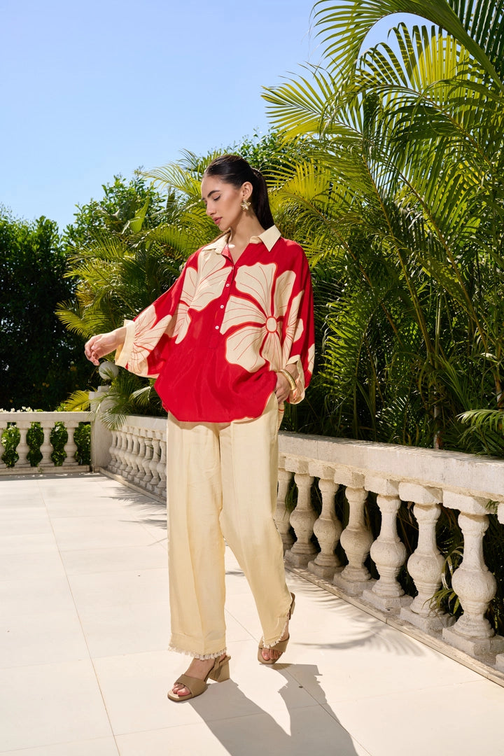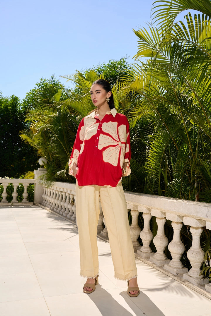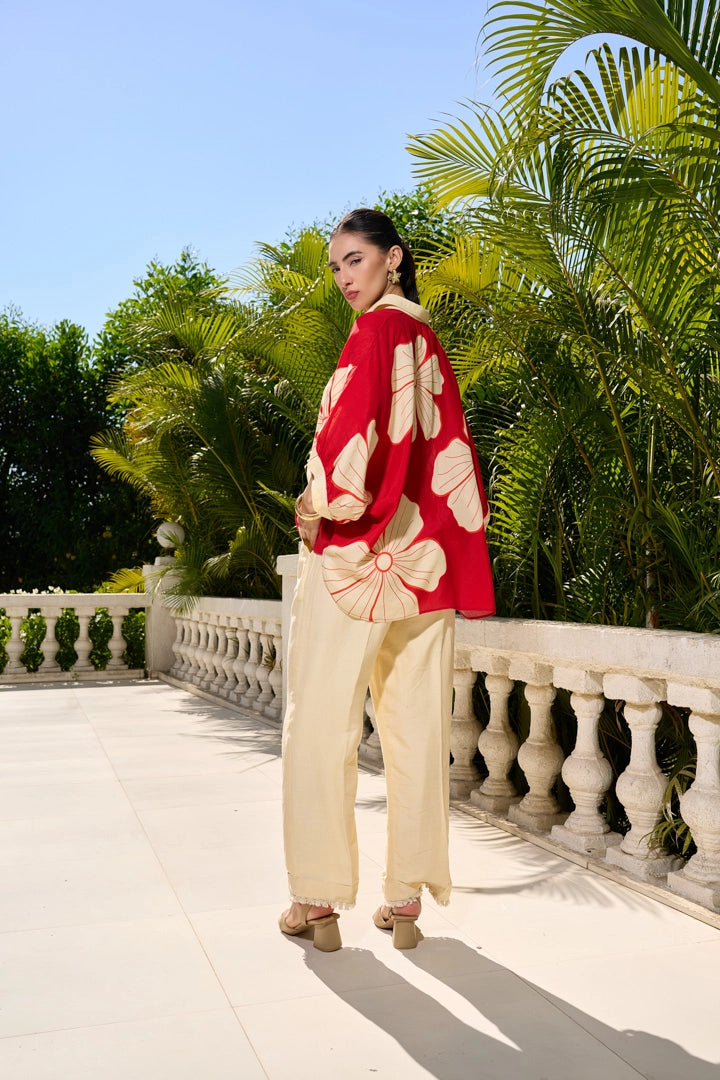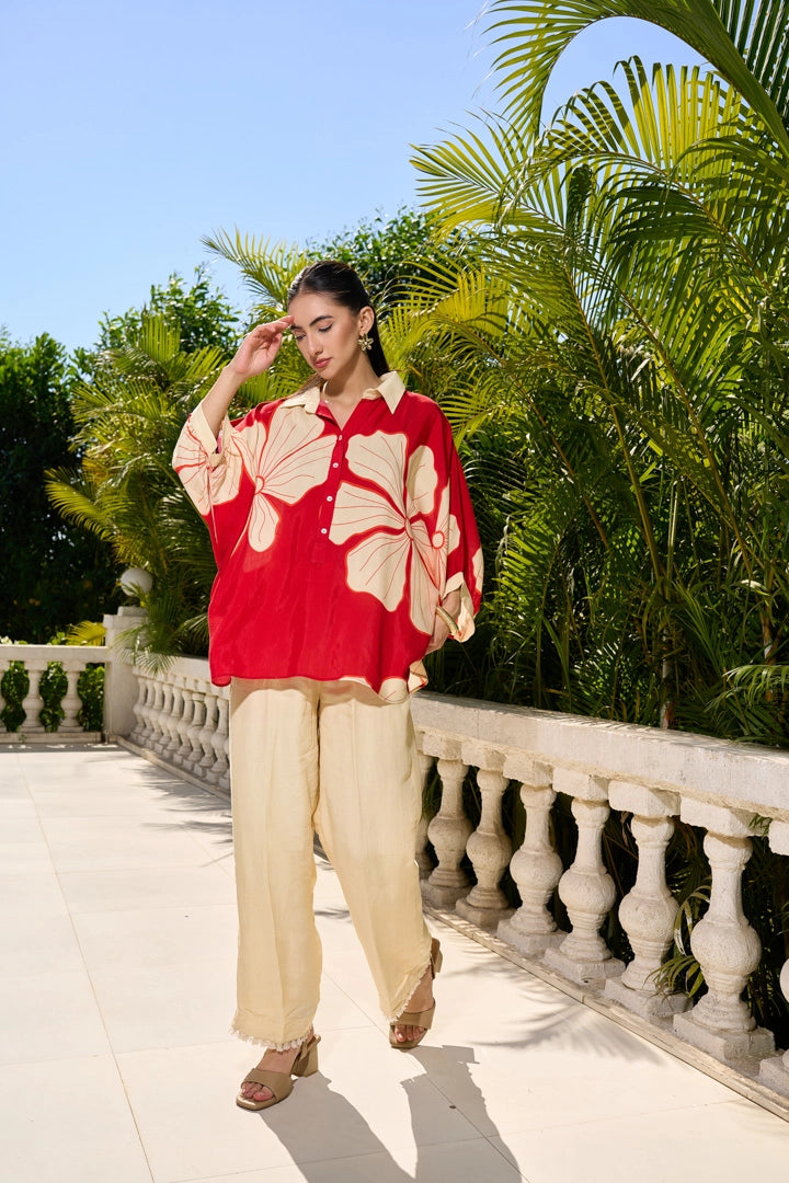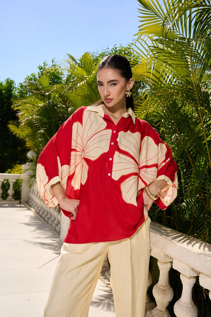 Embrace tropical elegance with the Crimson Hibiscus Set, a versatile ensemble perfect for resort getaways and casual everyday wear. This stunning kaftan shirt features vibrant crimson hibiscus patterns that evoke the beauty of island living. Crafted from breathable fabric, it effortlessly transitions from beachside lounging to relaxed dinners out. The relaxed silhouette offers comfort without compromising on style, making it an essential addition to your warm-weather wardrobe.
