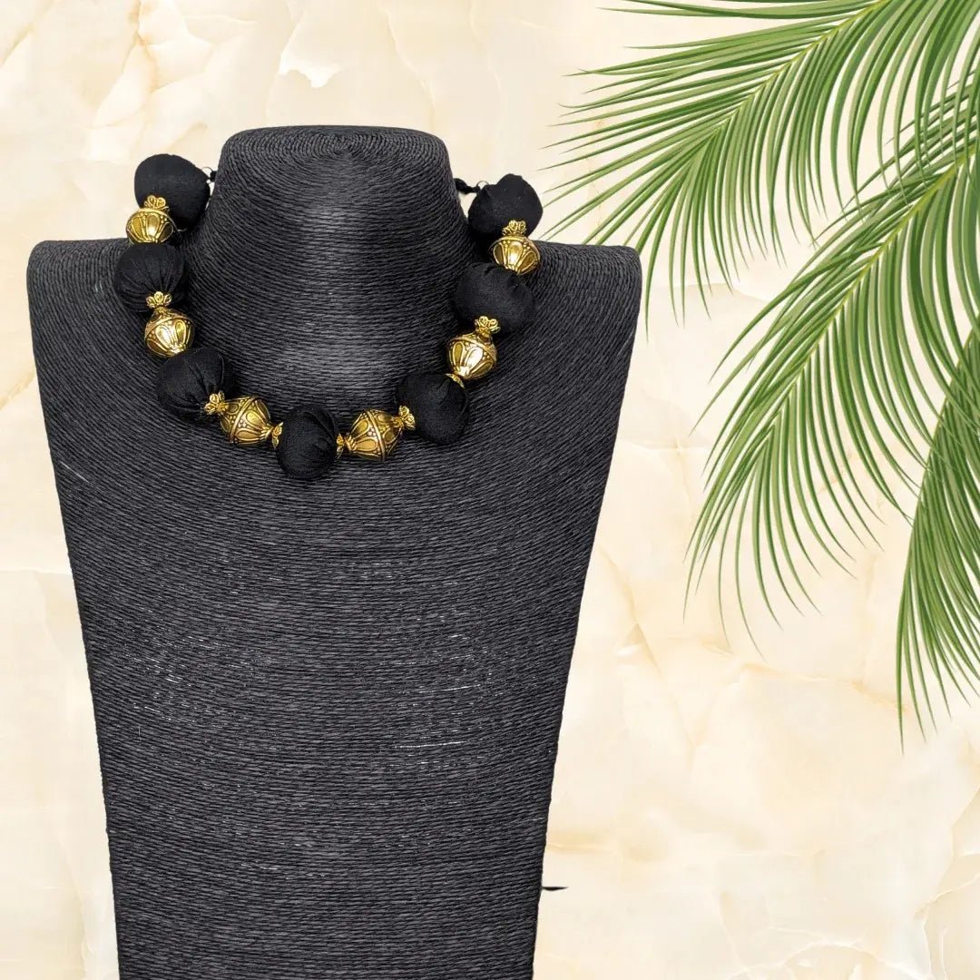 This artisan Potli necklace and earrings set showcases exquisite craftsmanship and attention to detail. Handmade with high-quality materials, this set adds a touch of elegance and sophistication to any outfit. The intricate design and vibrant colors make it a versatile addition to any jewelry collection.