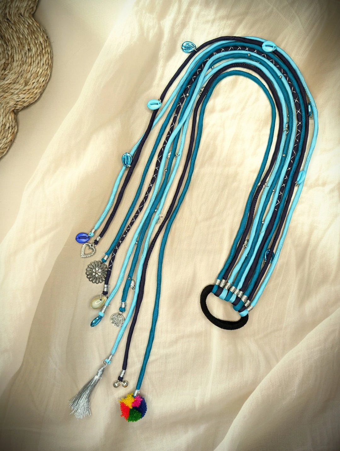The Nila Hair Wrap combines style and function with delicate shell, bead, and tassel accents that add a unique, elegant touch to your look. Crafted to gently protect your hair while enhancing your style, this wrap keeps your hair secure and frizz-free. Perfect for any occasion, it effortlessly blends beauty and practicality, making it a must-have accessory for your hair collection.