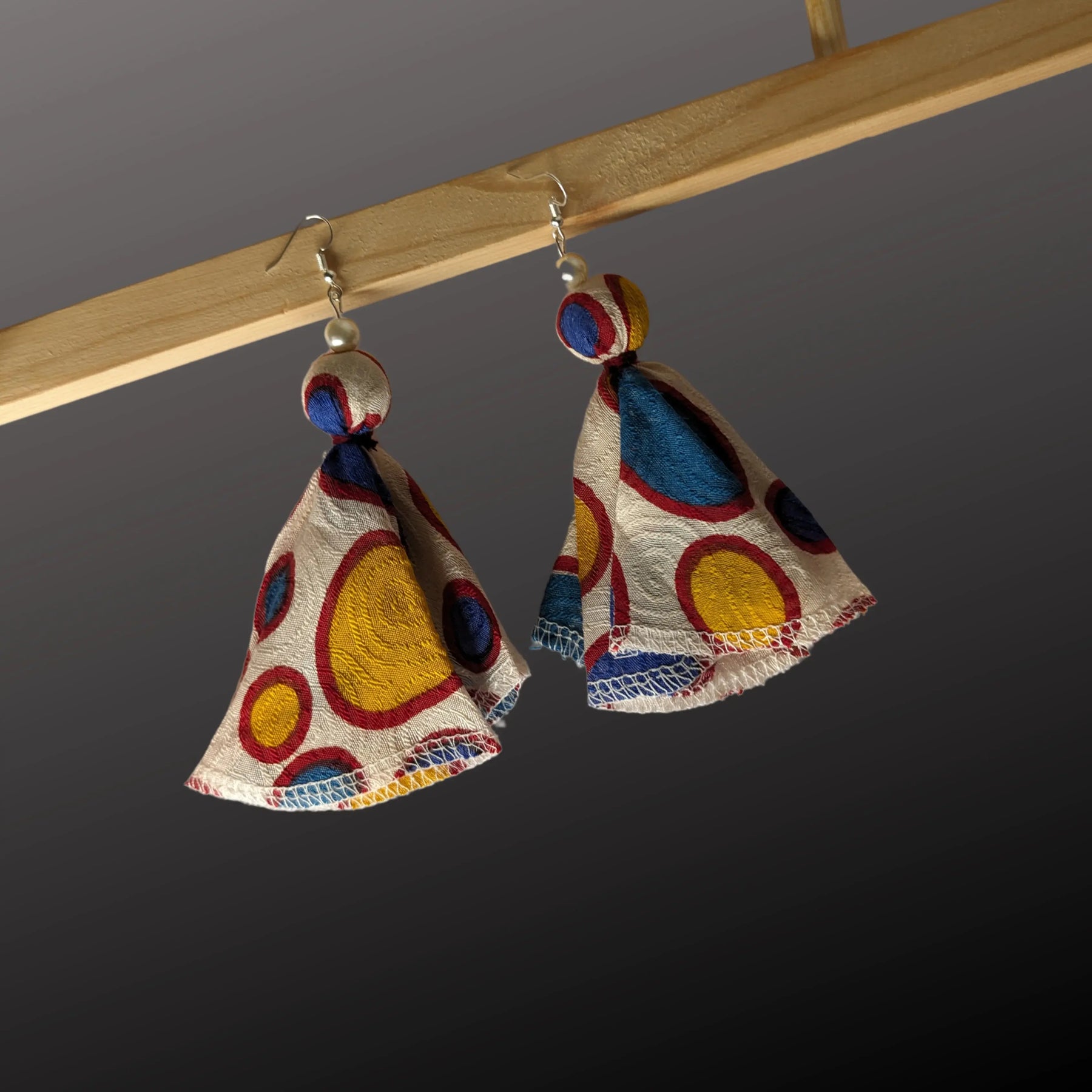 Unveil a touch of bohemian sophistication with our handcrafted printed tassel earrings. Each pair is meticulously crafted by skilled artisans, weaving together the soft charm of printed fabric with the fluidity of tassels. These earrings effortlessly fuse casual elegance with artisanal flair, making them the perfect accessory for any occasion. Elevate your style with the unique craftsmanship and timeless appeal of our printed tassel earrings, a must-have addition to your jewelry collection.