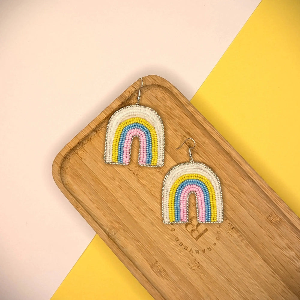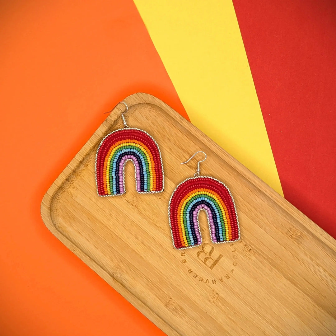 These Rainbow Earrings are expertly handcrafted with intricate embroidery and delicate beadwork. Each earring features a vibrant rainbow design, adding a pop of color to any outfit. Perfect for those who appreciate the beauty of detailed craftsmanship.